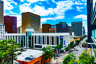 A fresh perspective on California’s neighborhood charm. This angle captures vibrant red, yellow, orange, and white buildings standing proudly under a clear blue sky. With playful contrasts and lush greenery, this image brings West Coast warmth right to your wall.
